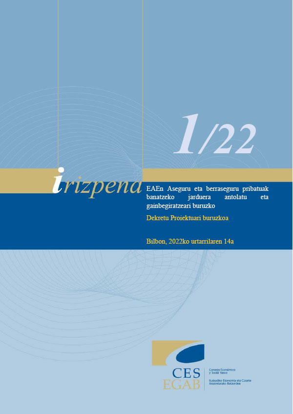 1/22 Irizpena, urtarrilaren 14koa, EAEn Aseguru eta berraseguru pribatuak banatzeko jarduera antolatu eta gainbegiratzeari buruzko Dekretu Proiektuari buruzkoa