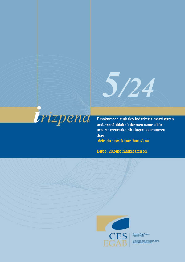 5/24 irizpena martxoaren 5ekoa, emakumeen aurkako indarkeria matxistaren biktimen seme-alaba umezurtzentzako dirulaguntza arautzen duen dekretu-proiektuari buruzkoa