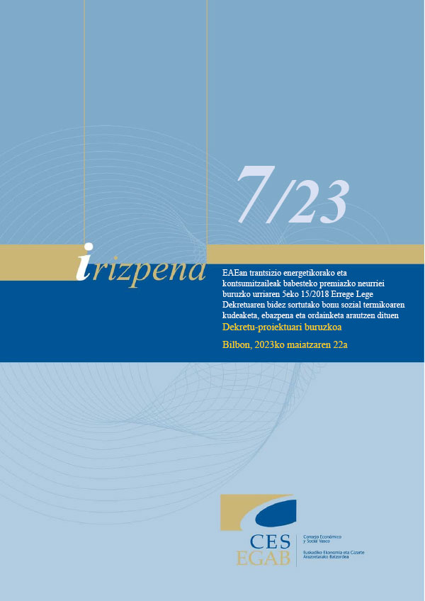 Irizpena 7/23 maiatzaren 22koa, EAan trantsizio energetikorako eta kontsumitzaileak babesteko premiazko neurriei buruzko urriaren 5eko 15/2018 Errege Lege Dekretuaren bidez sortutako bonu sozial termikoaren kudeaketa, ebazpena eta ordainketa arautzen dituen dekretu-proiektuari buruzkoa